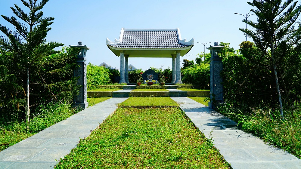 - Diện tích 19,2m2/ mộ song thân (bao gồm cả lối đi thăm mộ), quy cách ngang 6m và dài 2,5m.