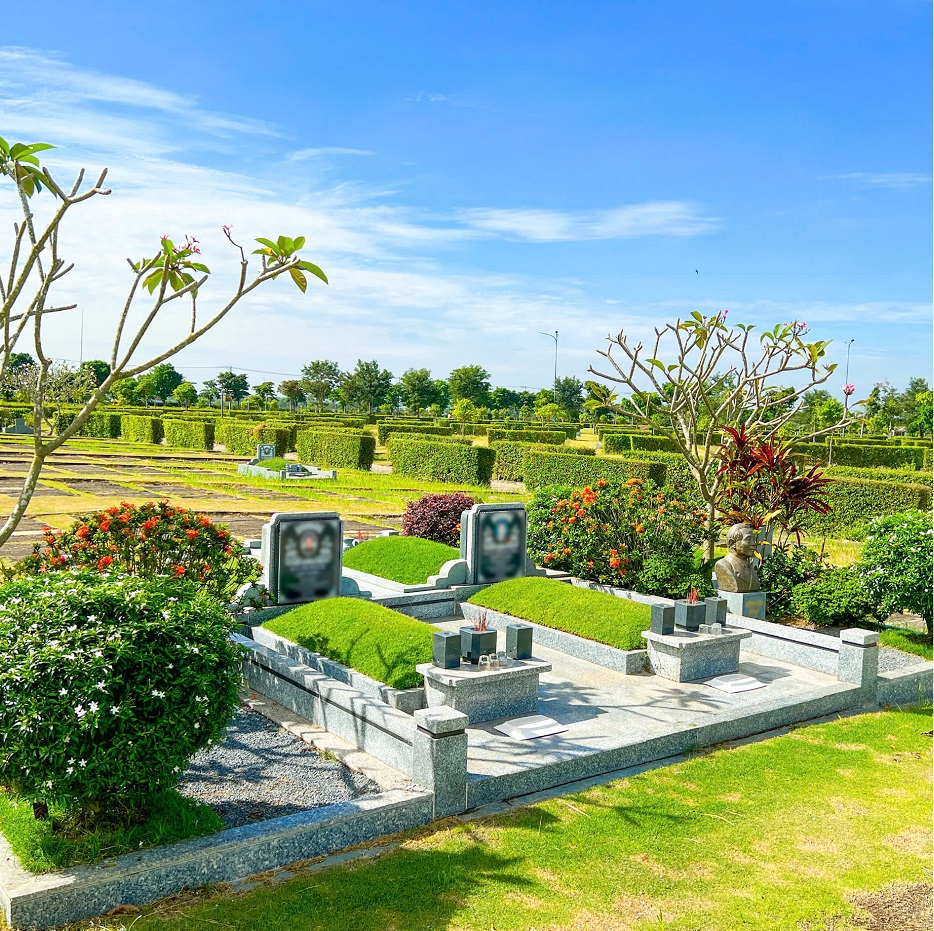 Mộ song thân còn được xem như mộ gia tộc loại nhỏ. Khách hàng được lựa chọn các kiểu đá khác nhau, trồng thêm tiếu cảnh hoặc cây sứ